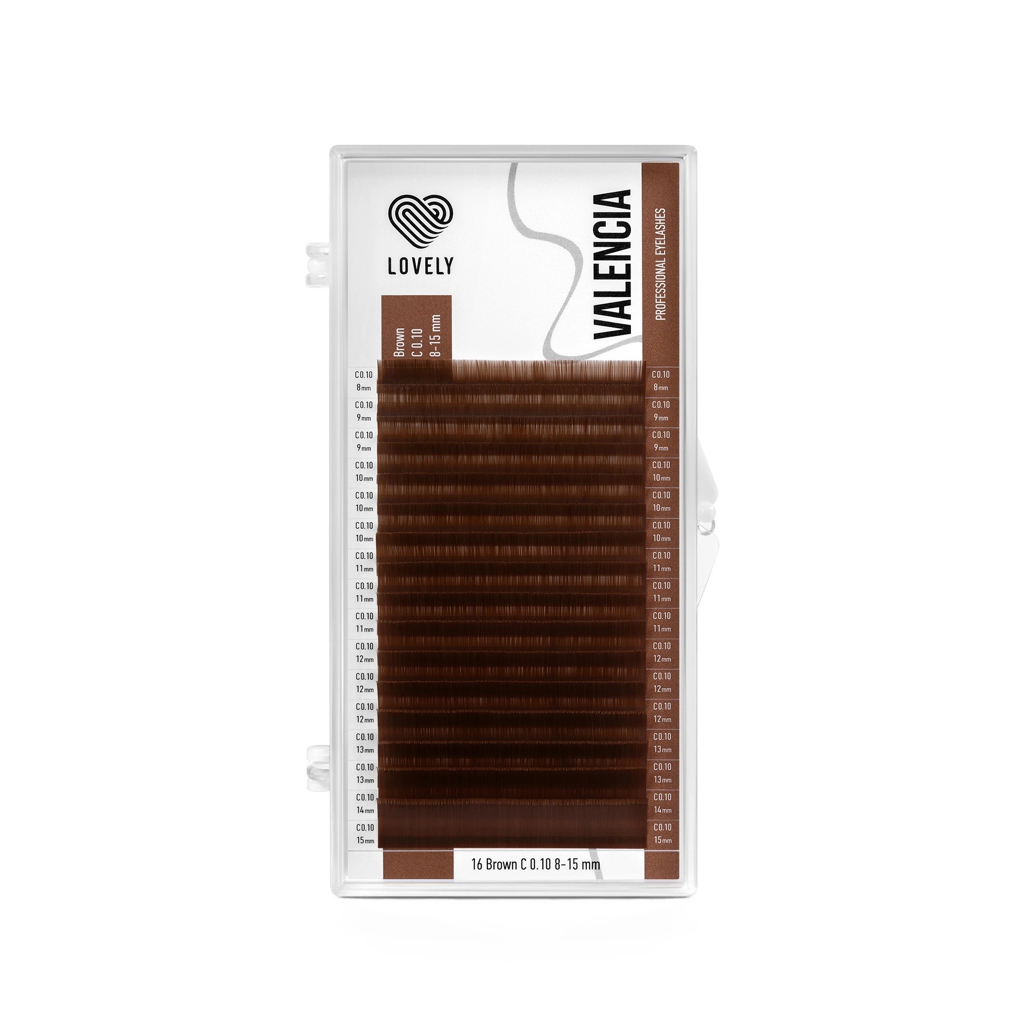 Ресницы коричневые LOVELY Valencia - 16 линий - MIX(0.10, C, 6-13)